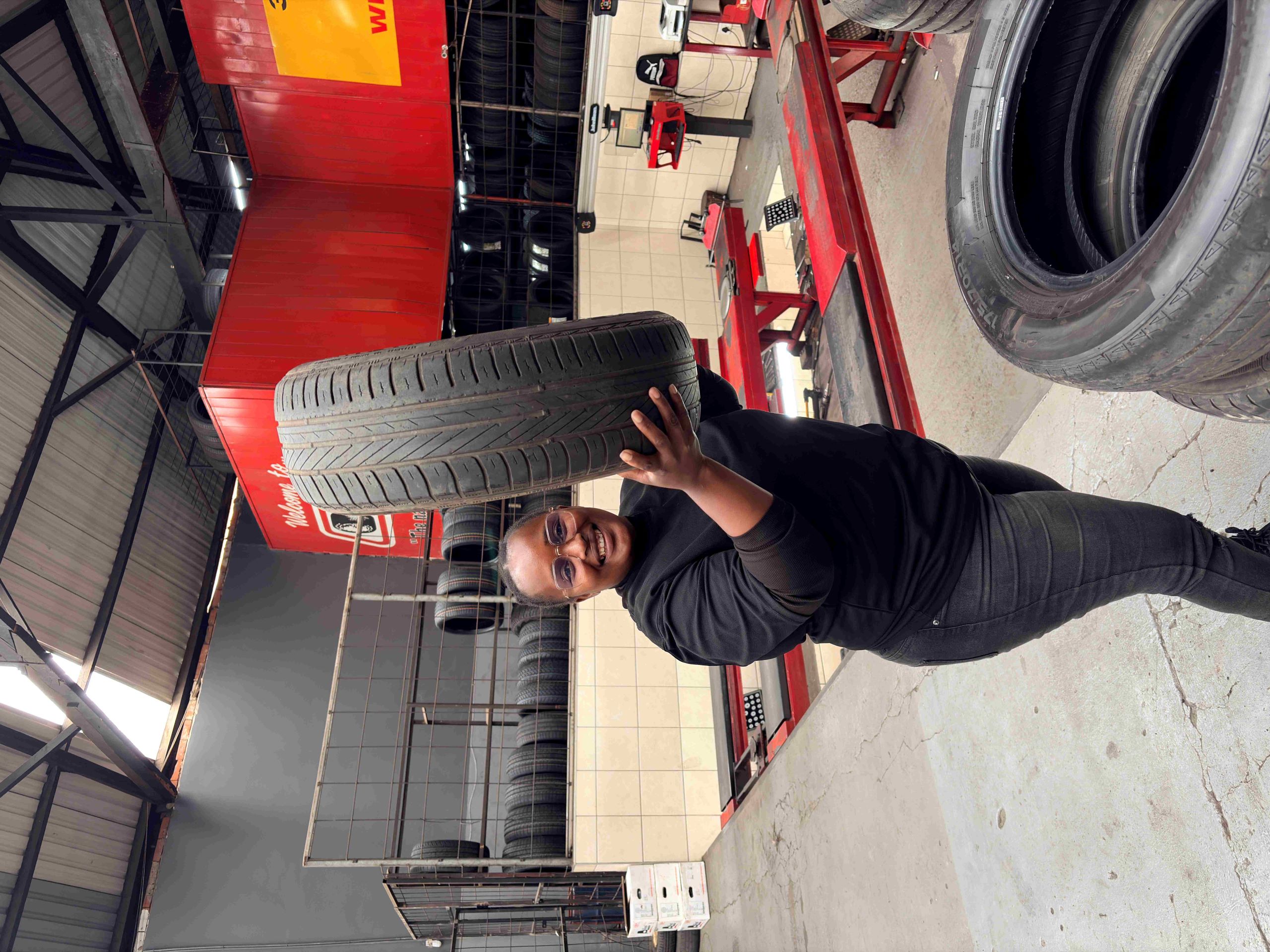 Nonceba Portia Mthembu works across multiple departments including tyre fitment, housekeeping, and sales support. She describes the workplace as supportive and hands-on, where employees are encouraged to learn and advance.